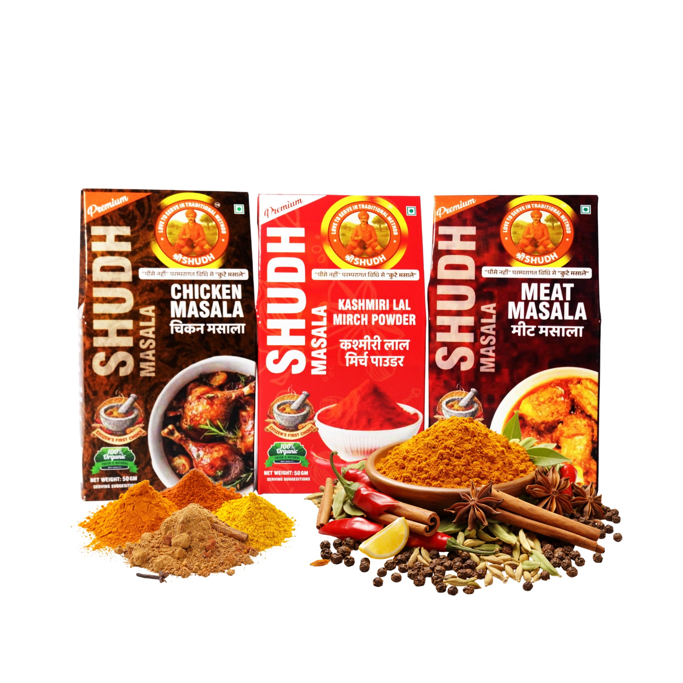 Discover the rich aroma and traditional taste of श्री Shudh premium spices.