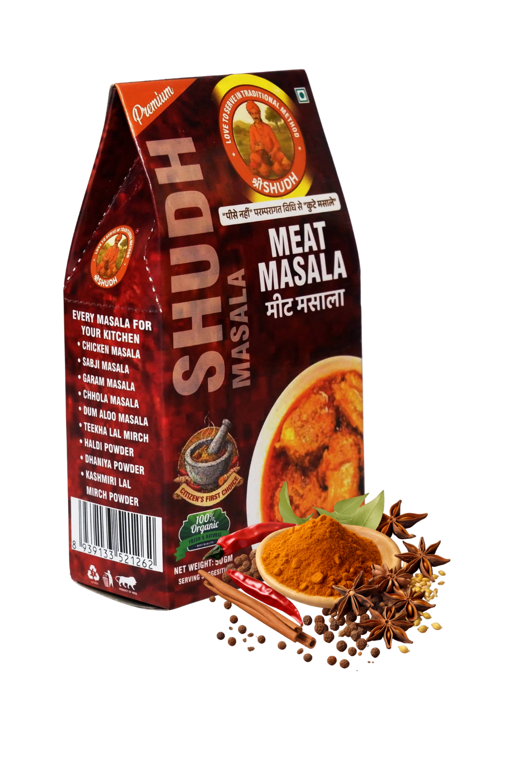 Meat Masala is a rich and aromatic spice blend crafted to enhance the flavor of meat dishes with a perfect balance of traditional Indian spices. It delivers a deep, authentic taste and irresistible aroma to every preparation.