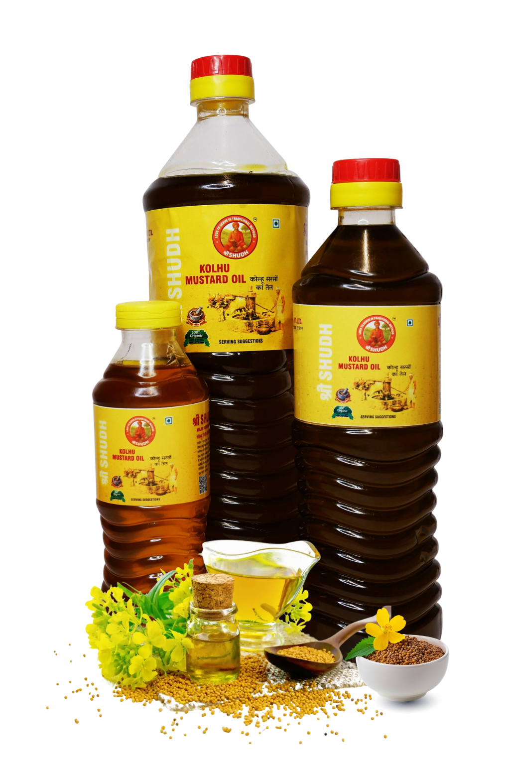 Mustard Oil is a traditional cold-pressed oil known for its strong aroma, rich flavor, and natural purity. Extracted using the traditional Kolhu method, it retains its authentic taste and nutritional goodness.
